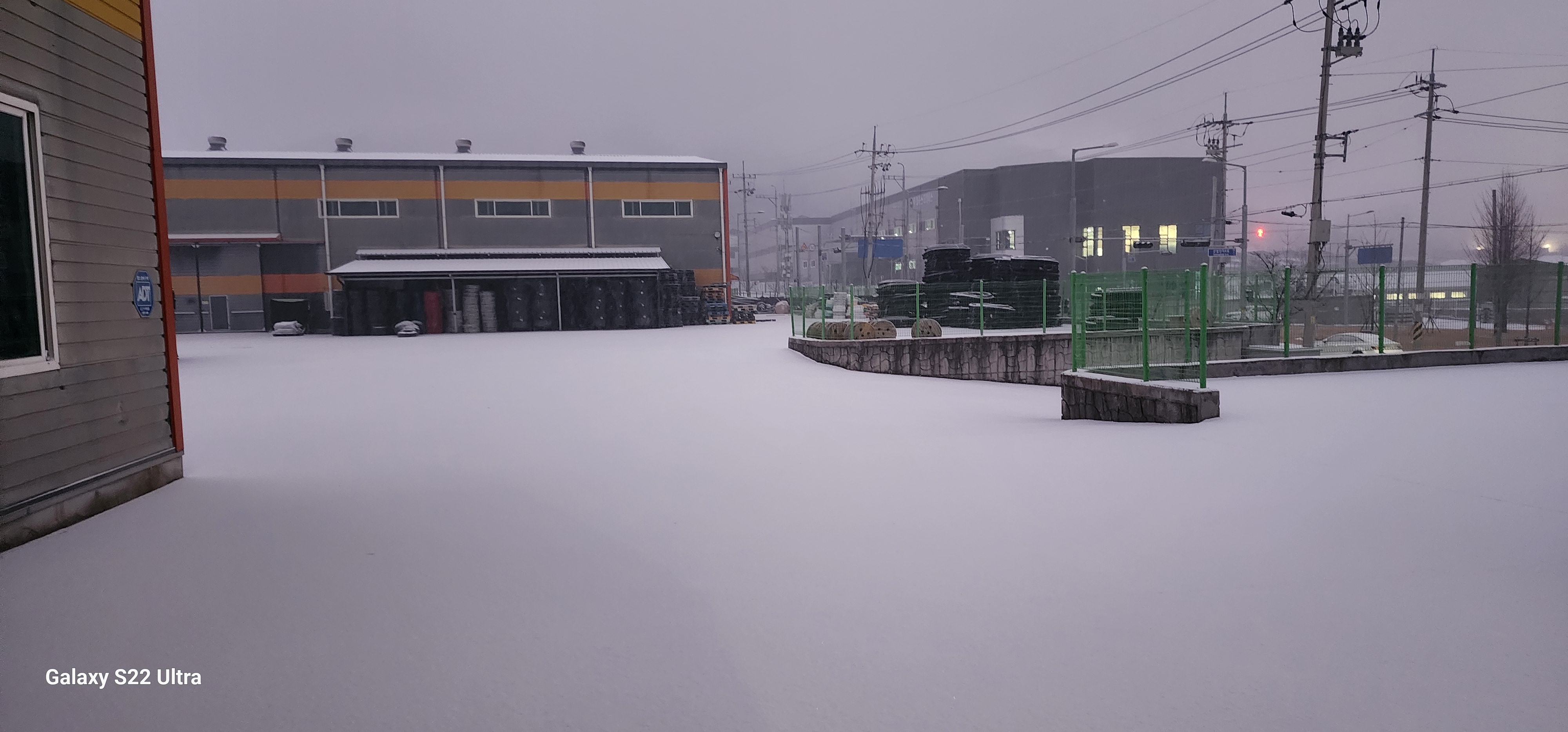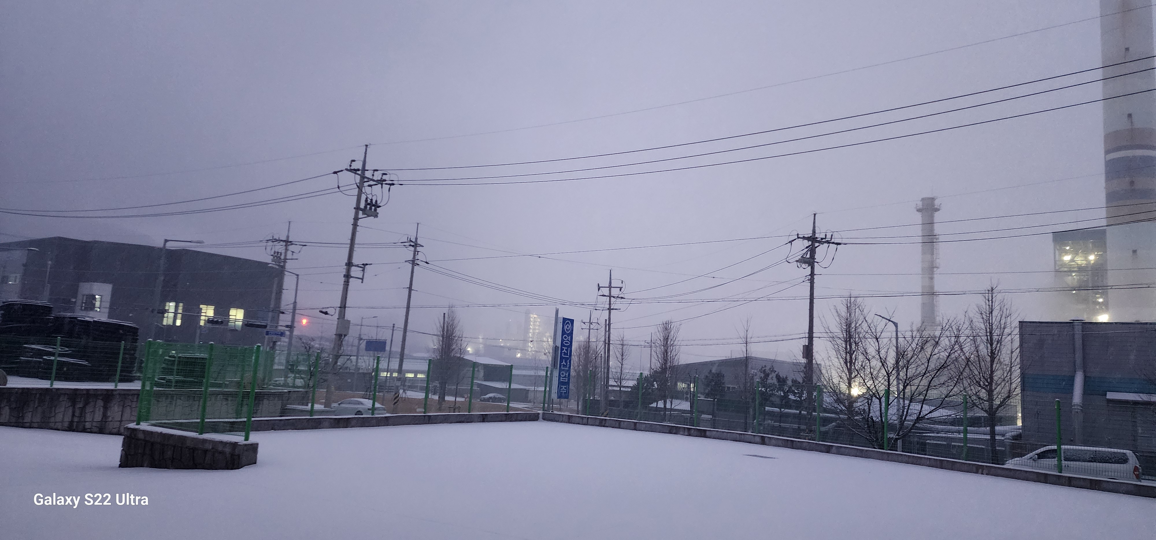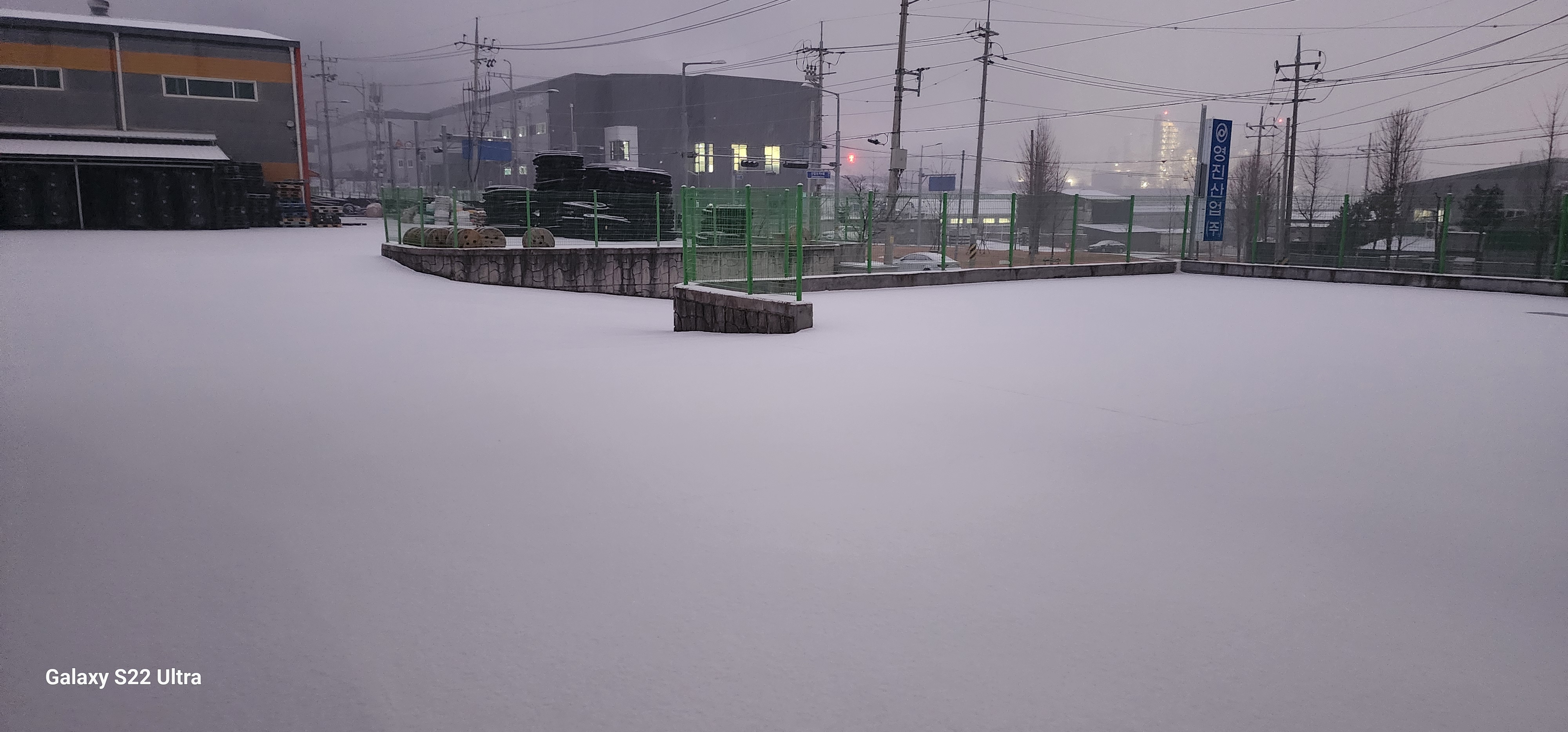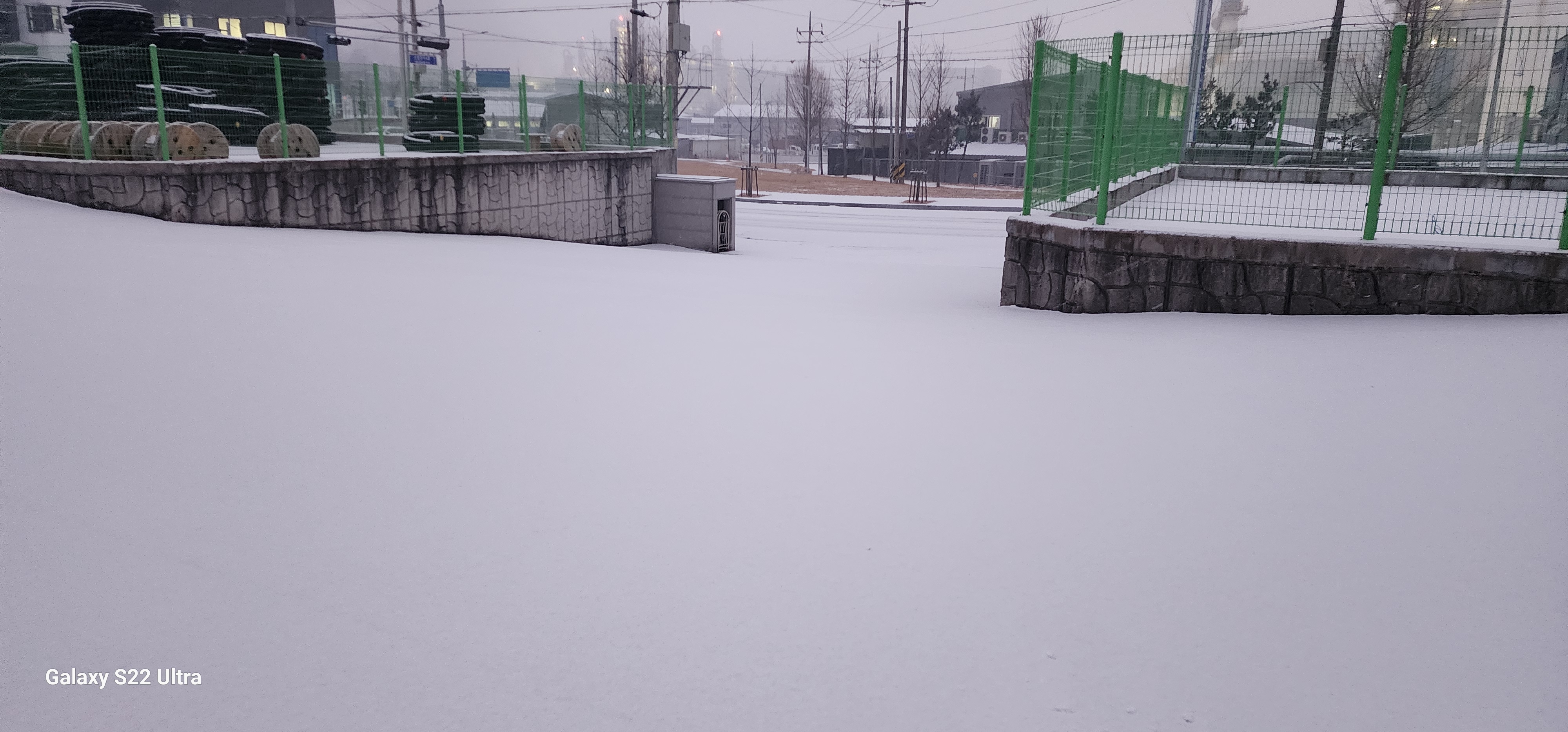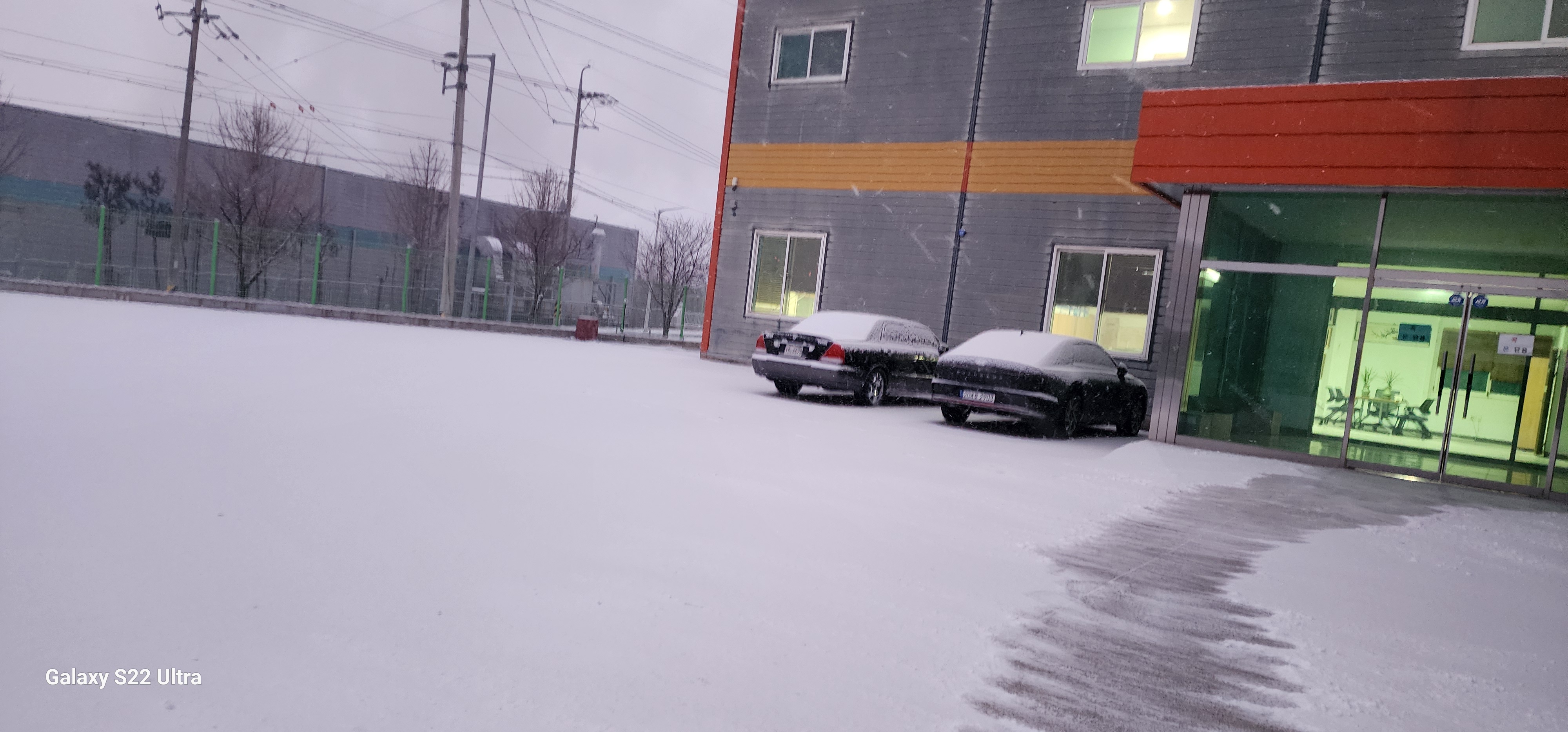 아침 일찍 출근해서 보니 눈이 하얗게 쌓여